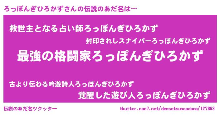 | 意味不明あだ名 | 『ろっぽんぎひろかずフォーエバー』 |
