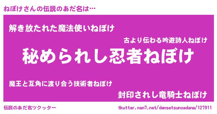 | ファンタジー風あだ名 | 『エターナルネボケー』『ネボフェル』 |