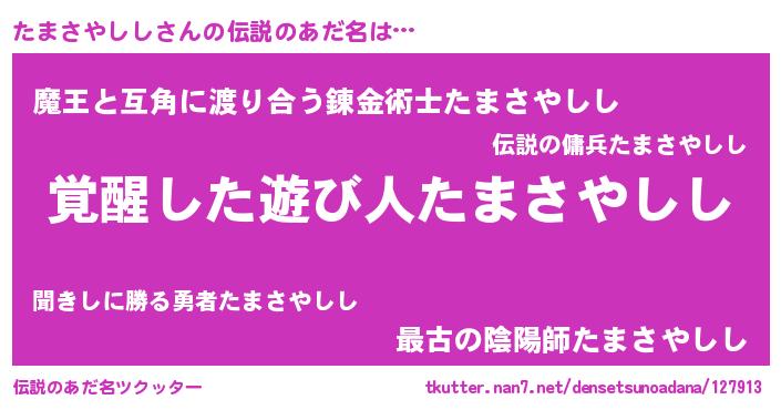 | 男性向けラノベタイトル風あだ名 | 『この素晴らしい世界にたまさやししを!』 |