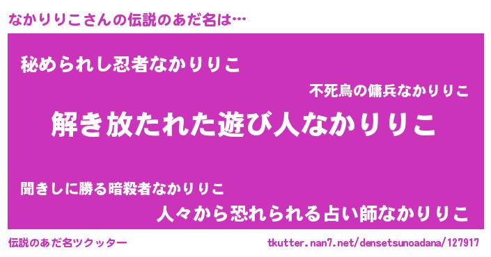 | 料理風あだ名 | 『なかりりこごはん』 |