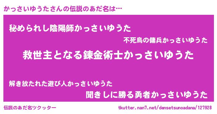 | ヒーロー風カッコイイあだ名 | 『慈愛の使者かっさいゆうた』 |
