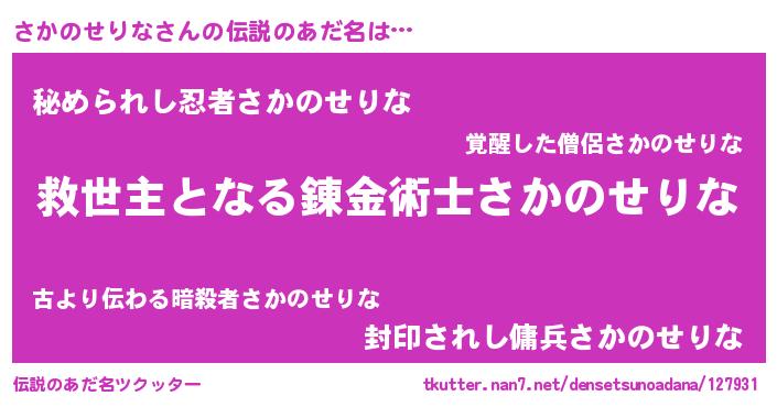 | ヒーロー風カッコイイあだ名 | 『天空の使者さかのせりな』 |