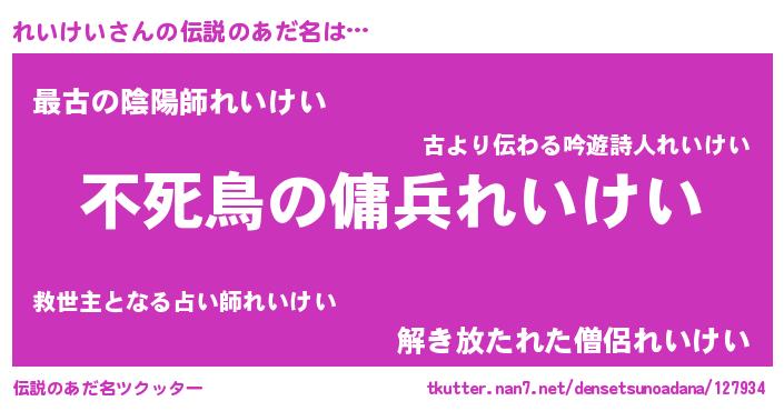 | 女子向けラノベタイトル風あだ名 | 『れいけい姫と円卓の騎士』 |