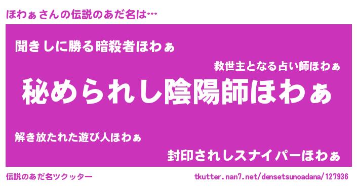 | ヒーロー風カッコイイあだ名 | 『ウルトラほわぁマン』『仮面ホワダー』 |