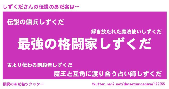 | 意味不明あだ名 | 『しずくだフォーエバー』『自称しずくだ』 |