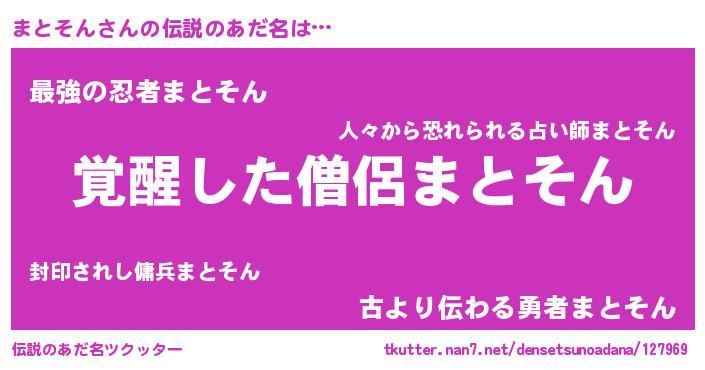 | 男性向けラノベタイトル風あだ名 | 『まとそんに滅ぼされるだけの簡単なお仕事です』 |