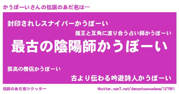| 2回繰り返すあだ名 | 『かかうう』『もりもり』『かうかう』 |