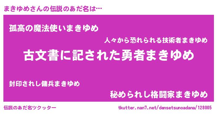 | ヒーロー風カッコイイあだ名 | 『仮面マキダー』『ネオマキユメ』 |