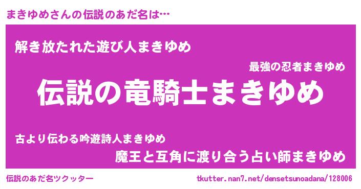 | 胡散臭い通販商品みたいなあだ名 | 『必ず成功するブレスレット…その名も「まきゆめ」』 |