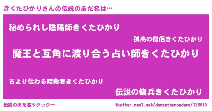 | 男性向けラノベタイトル風あだ名 | 『おまえをオタクにしてやるから、俺をきくたひかりにしてくれ! 』 |