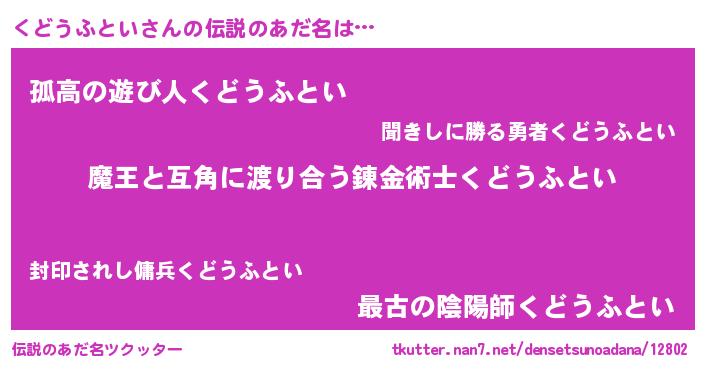 | ヒーロー風カッコイイあだ名 | 『愛の使者くどうふとい』『仮面クドダー』 |
