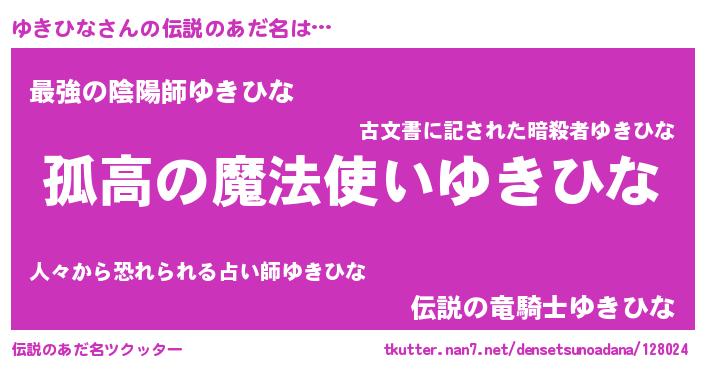 | 意味不明あだ名 | 『住所不定無職ゆきひな(4歳)』 |