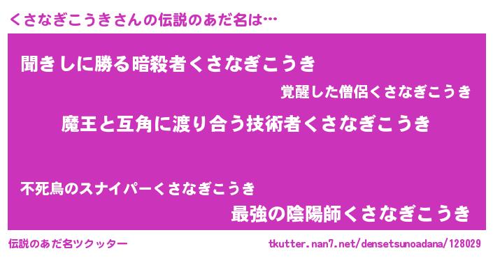 | ヒーロー風カッコイイあだ名 | 『愛の使者くさなぎこうき』 |