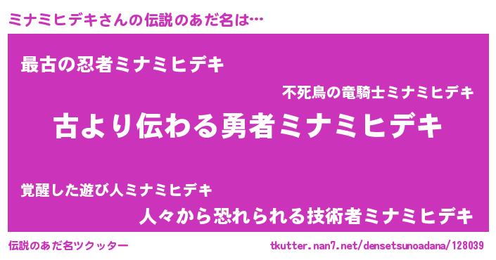 | ファンタジー風あだ名 | 『ミナディッシュ』『ゼミナトゥ』 |