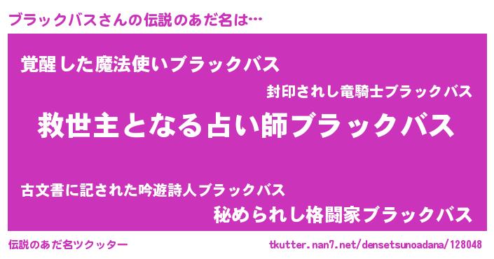 | ヒーロー風カッコイイあだ名 | 『慈愛の使者ブラックバス』 |