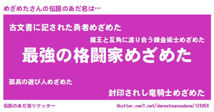 | ヒーロー風カッコイイあだ名 | 『仮面メザダー』『最強戦士メザメタ』 |
