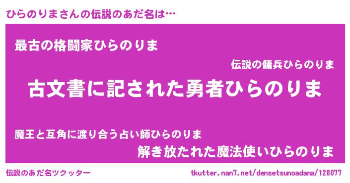 | ヒーロー風カッコイイあだ名 | 『ネオヒラノリマ』『仮面ヒラダー』 |