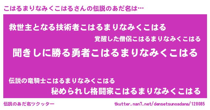 | 男性向けラノベタイトル風あだ名 | 『はたらくこはるまりなみくこはるさま!』 |