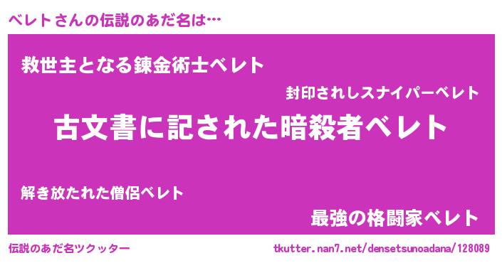 | 意味不明あだ名 | 『永久保存ベレト』『自称ベレト』 |