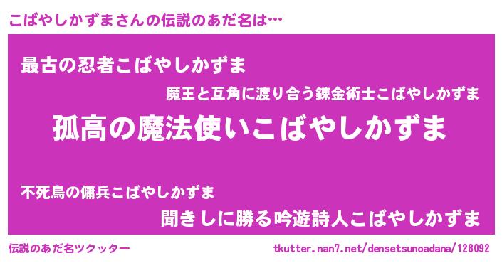| 意味不明あだ名 | 『自称こばやしかずま』 |