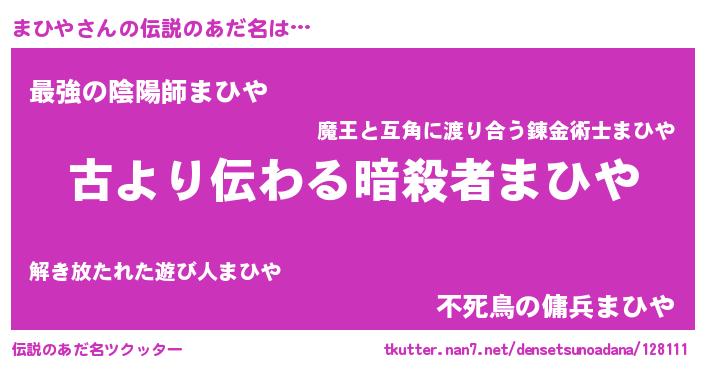 | ヒーロー風カッコイイあだ名 | 『ネオマヒヤ』『ウルトラまひやマン』 |