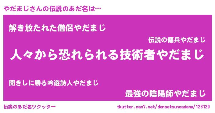 | 意味不明あだ名 | 『自称やだまじ』『やだまじフォーエバー』 |