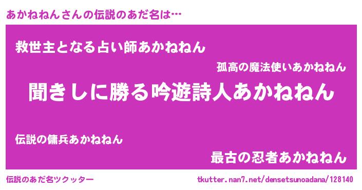 | ヒーロー風カッコイイあだ名 | 『ウルトラ戦士アカネネン』 |