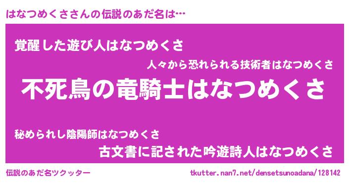 | ヒーロー風カッコイイあだ名 | 『仮面ハナダー』『スーパーハナツメクサ』 |