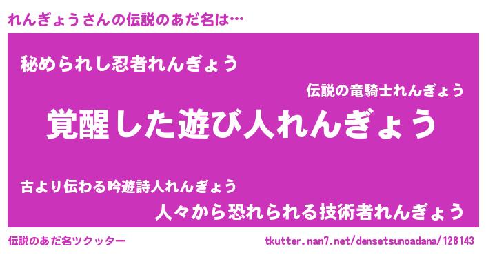 | 意味不明あだ名 | 『とにかく怪しいれんぎょう』 |