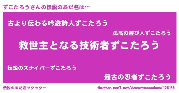 | 意味不明あだ名 | 『自称ずこたろう』『永久保存ずこたろう』 |