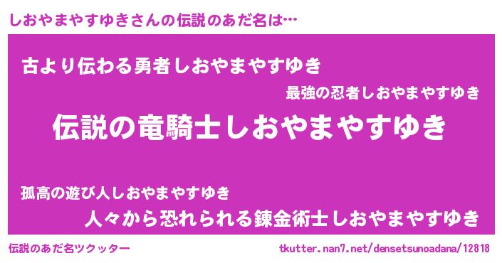 | 胡散臭い通販商品みたいなあだ名 | 『必ず成功するブレスレット…その名も「しおやまやすゆき」』 |