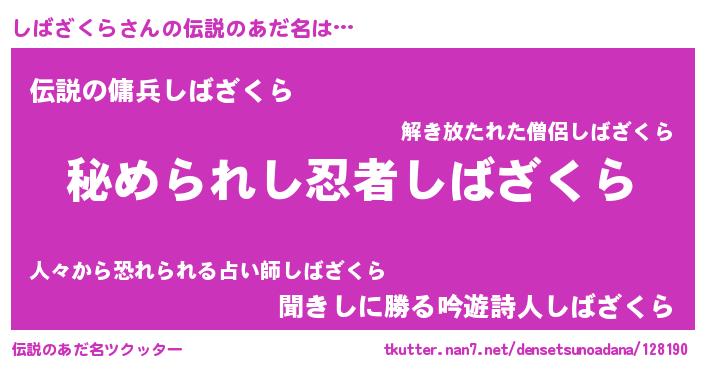 | 意味不明あだ名 | 『しばざくらフォーエバー』 |