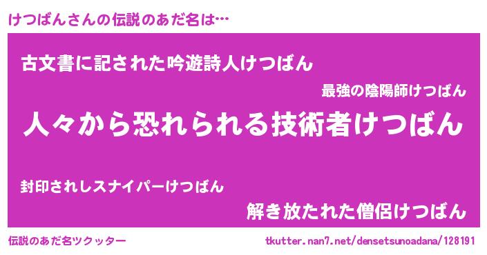 | ヒーロー風カッコイイあだ名 | 『正義の使者けつばん』『ネオケツバン』 |
