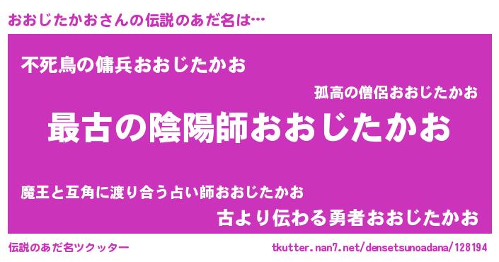 | ファンタジー風あだ名 | 『エターナルオオジタカオー』 |