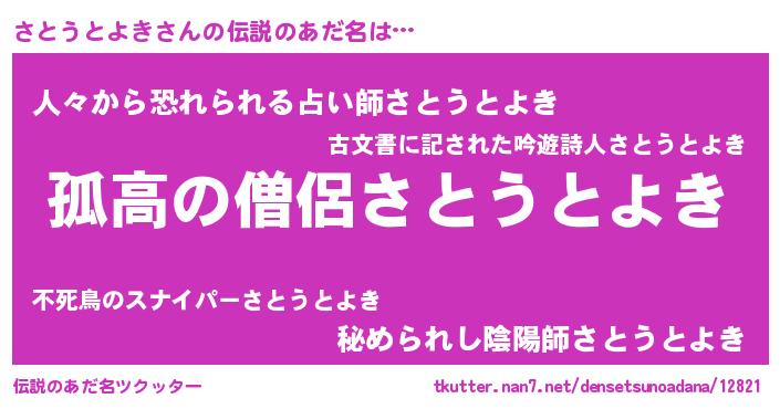 | 意味不明あだ名 | 『とにかく怪しいさとうとよき』 |