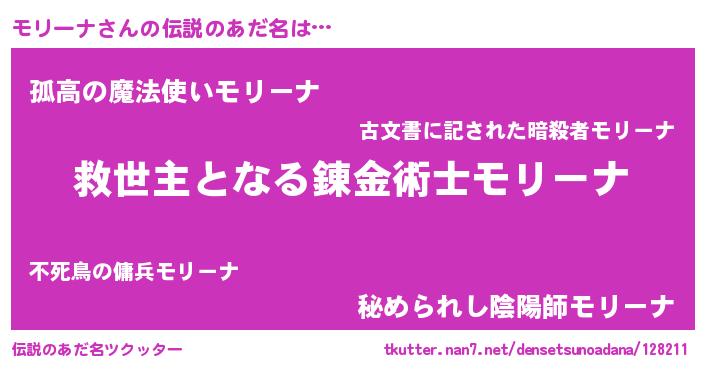 | ヒーロー風カッコイイあだ名 | 『慈愛の使者モリーナ』『暗黒騎士モリ』 |