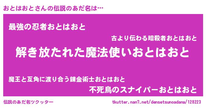 | ヒーロー風カッコイイあだ名 | 『銀牙騎士オト』『スーパーオトハオト』 |