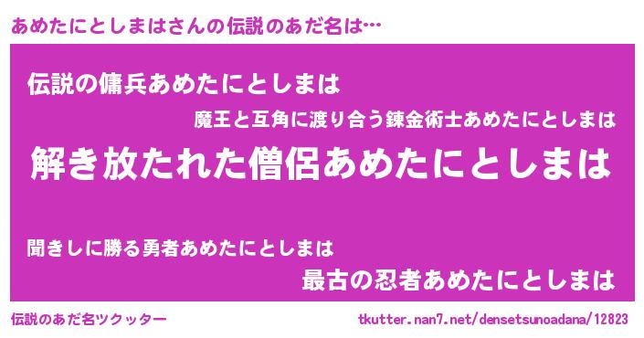 | 意味不明あだ名 | 『住所不定無職あめたにとしまは(14歳)』 |