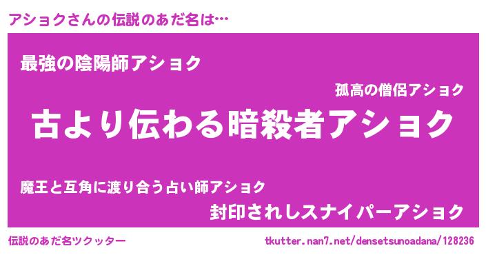 | 胡散臭い通販商品みたいなあだ名 | 『来世でも幸せになれる健康食品…その名も「アショク」』 |