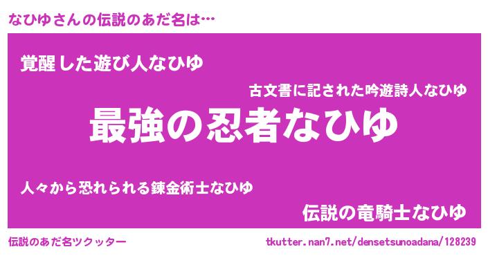 | ファンタジー風あだ名 | 『エターナルナヒユー』『ナヒフェル』 |