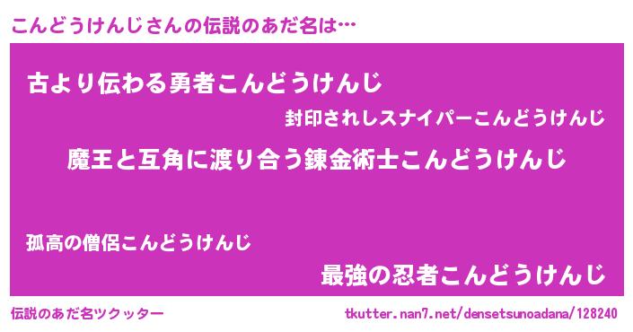 | 女子向けラノベタイトル風あだ名 | 『こんどうけんじ恋絵巻』 |