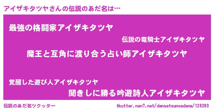 アイザキタツヤさんの伝説のあだ名をツクッター!