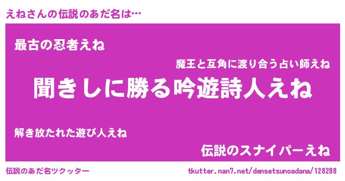 | 意味不明あだ名 | 『住所不定無職えね(6歳)』『永久保存えね』 |