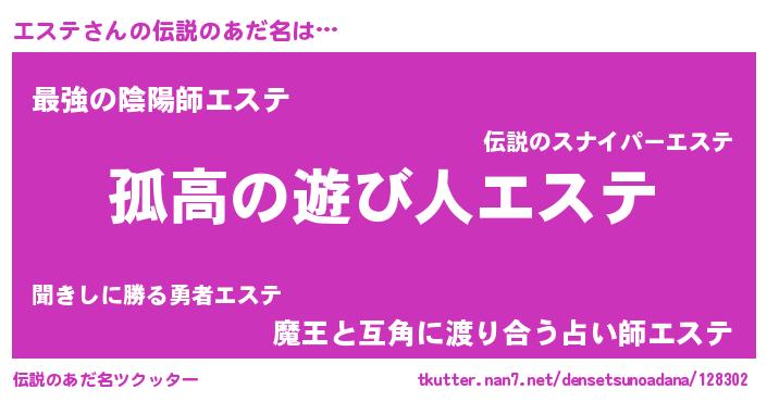 | 女子向けラノベタイトル風あだ名 | 『エステは平凡を望む』『エステの婚約者』 |