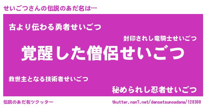 | 男性向けラノベタイトル風あだ名 | 『せいごつに滅ぼされるだけの簡単なお仕事です』 |