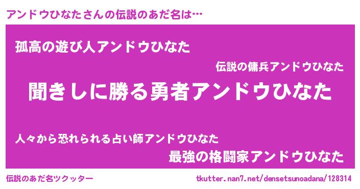 | 男性向けラノベタイトル風あだ名 | 『アンドウひなたという概念が存在しない退屈な世界 』 |