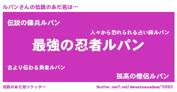 | ヒーロー風カッコイイあだ名 | 『仮面ルパダー』『ウルトラルパンマン』 |
