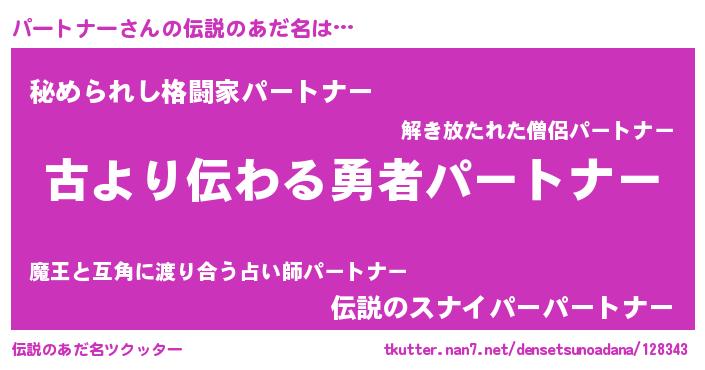 | 意味不明あだ名 | 『永久保存パートナー』『自称パートナー』 |
