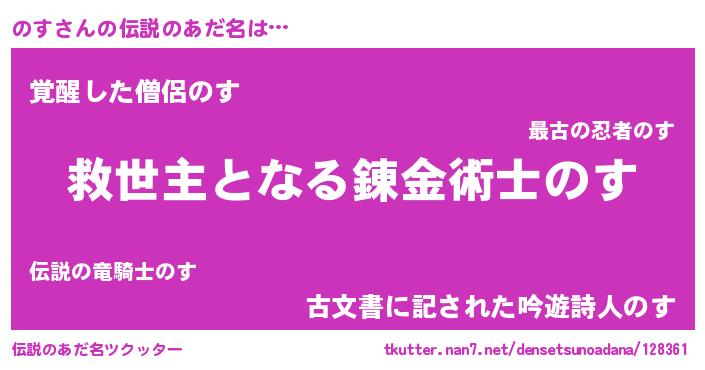 | ヒーロー風カッコイイあだ名 | 『天空の使者のす』『炎刃騎士ノス』 |