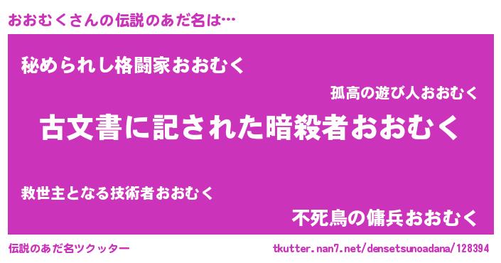 | 胡散臭い通販商品みたいなあだ名 | 『前代未聞の健康食品…その名も「おおむく」』 |